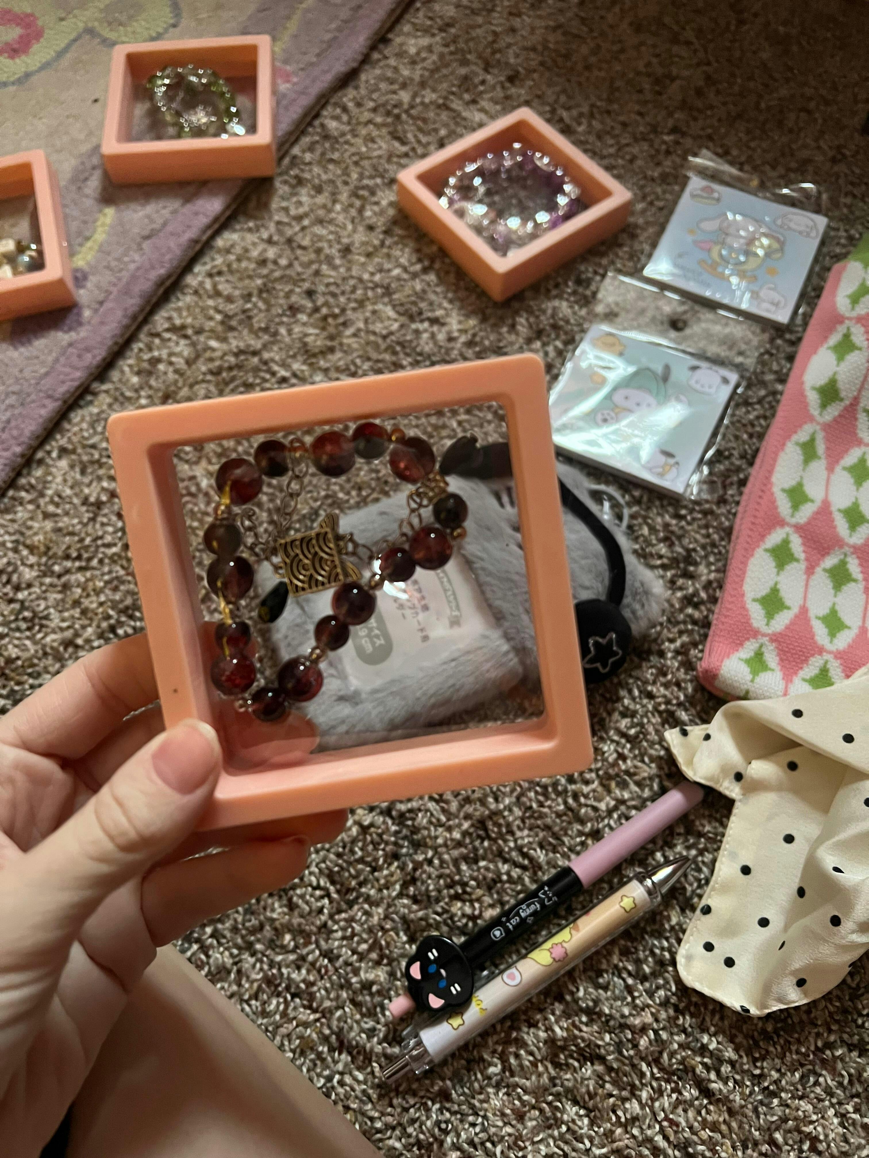 Very good Items I love the little bag and card holder! I also love the pens and little sticky notes! The bag charm is so cute! I also love the bracelets and the colors! I had tried this out to see if this stuff is actually real! And I was really surprised! Thank you for being my first ever lucky scoop attempt! The only thing is it did take awhile to get to me but that’s due to out of state delivery! But beside that I love this thank you!!!